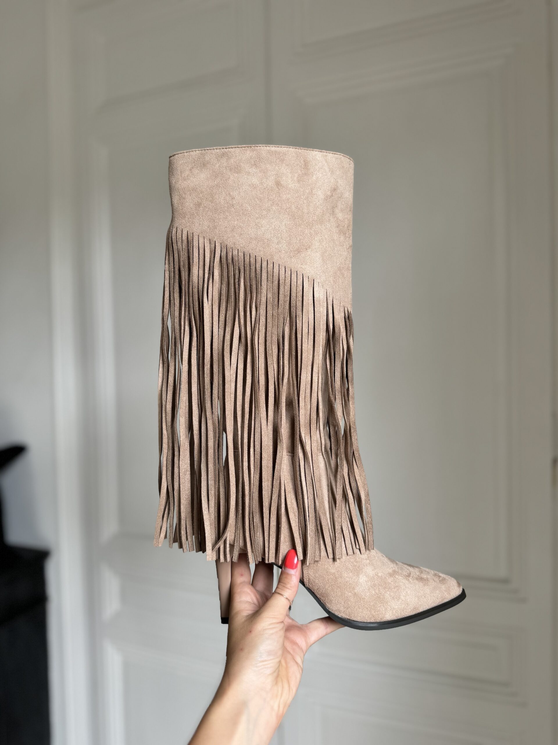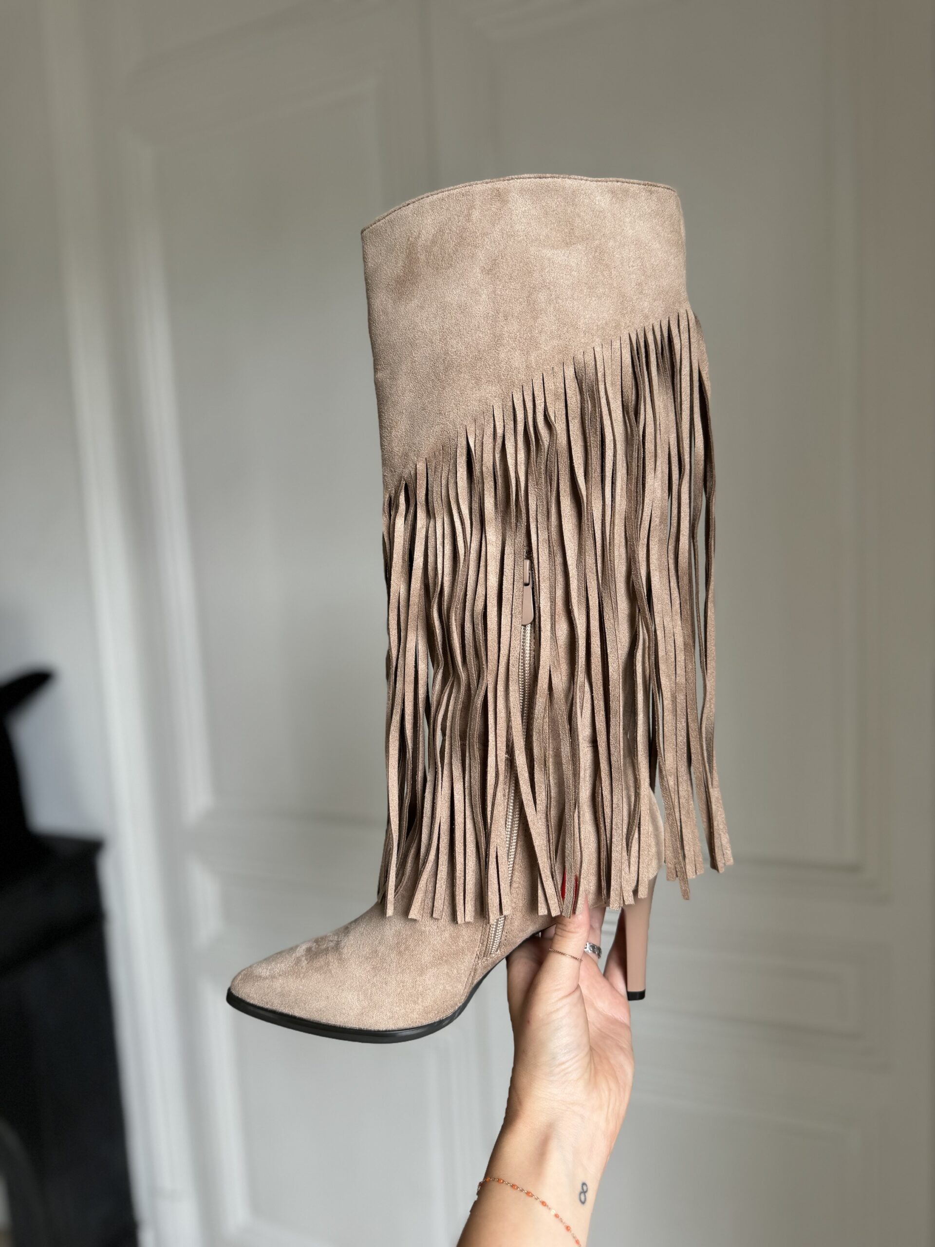 bottes aiguilles à franges beige