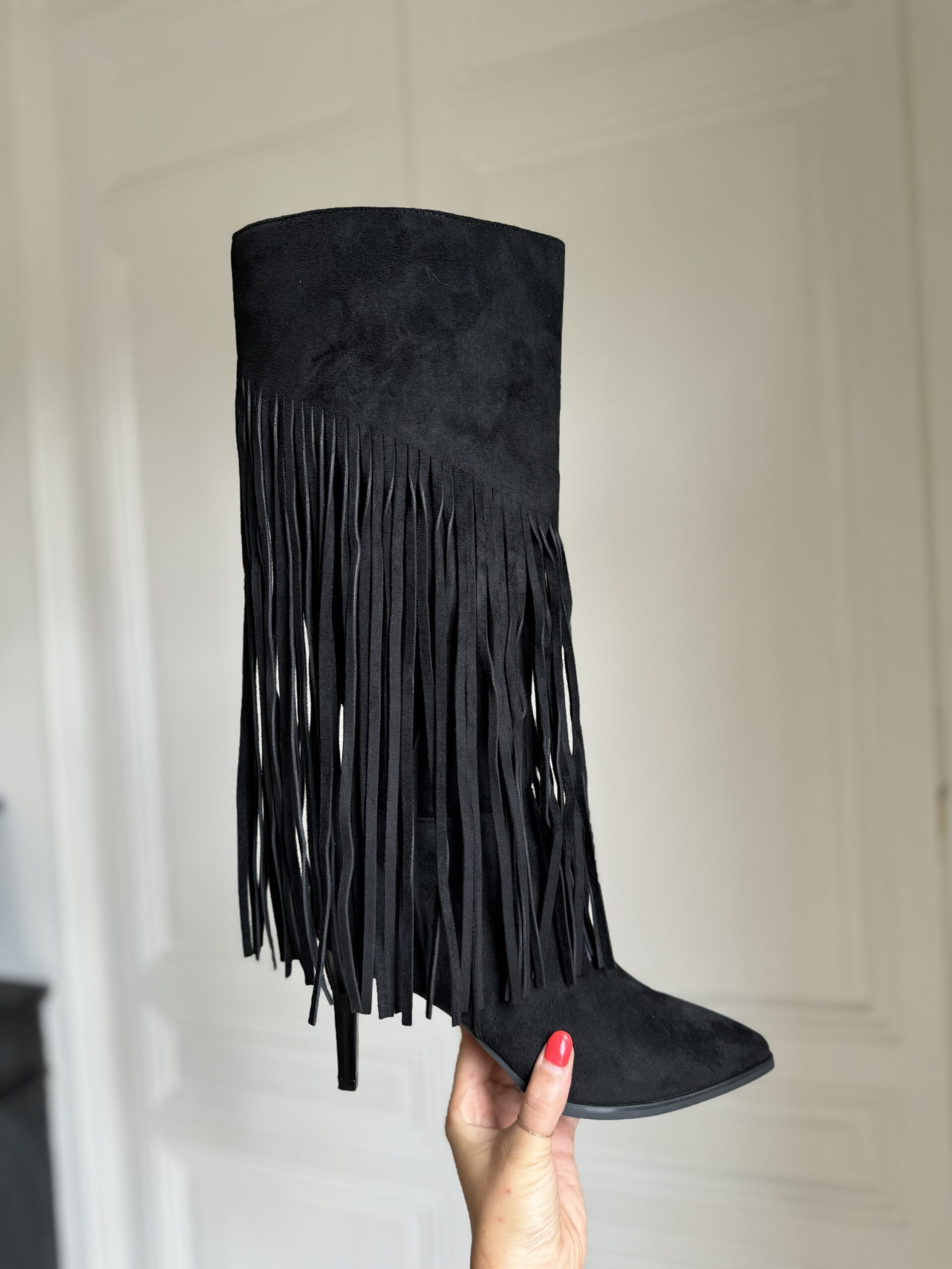bottes aiguilles à franges noir