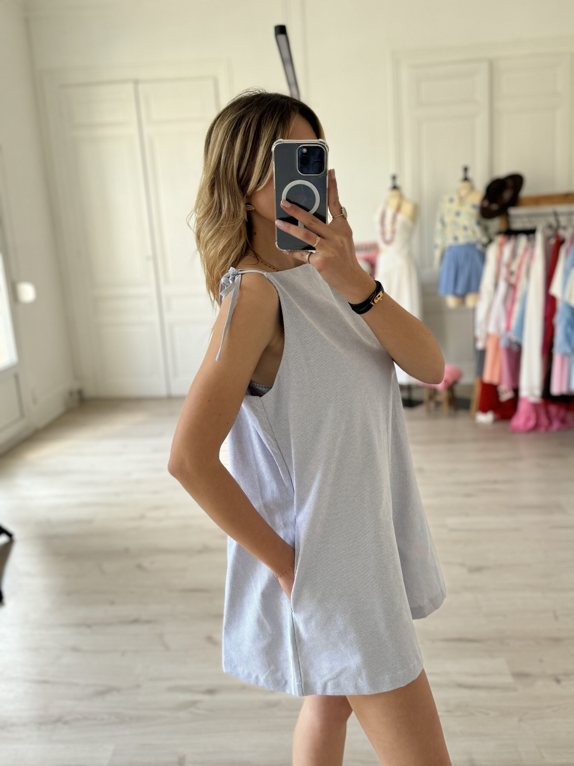- Jade porte la taille S et mesure 1,68m