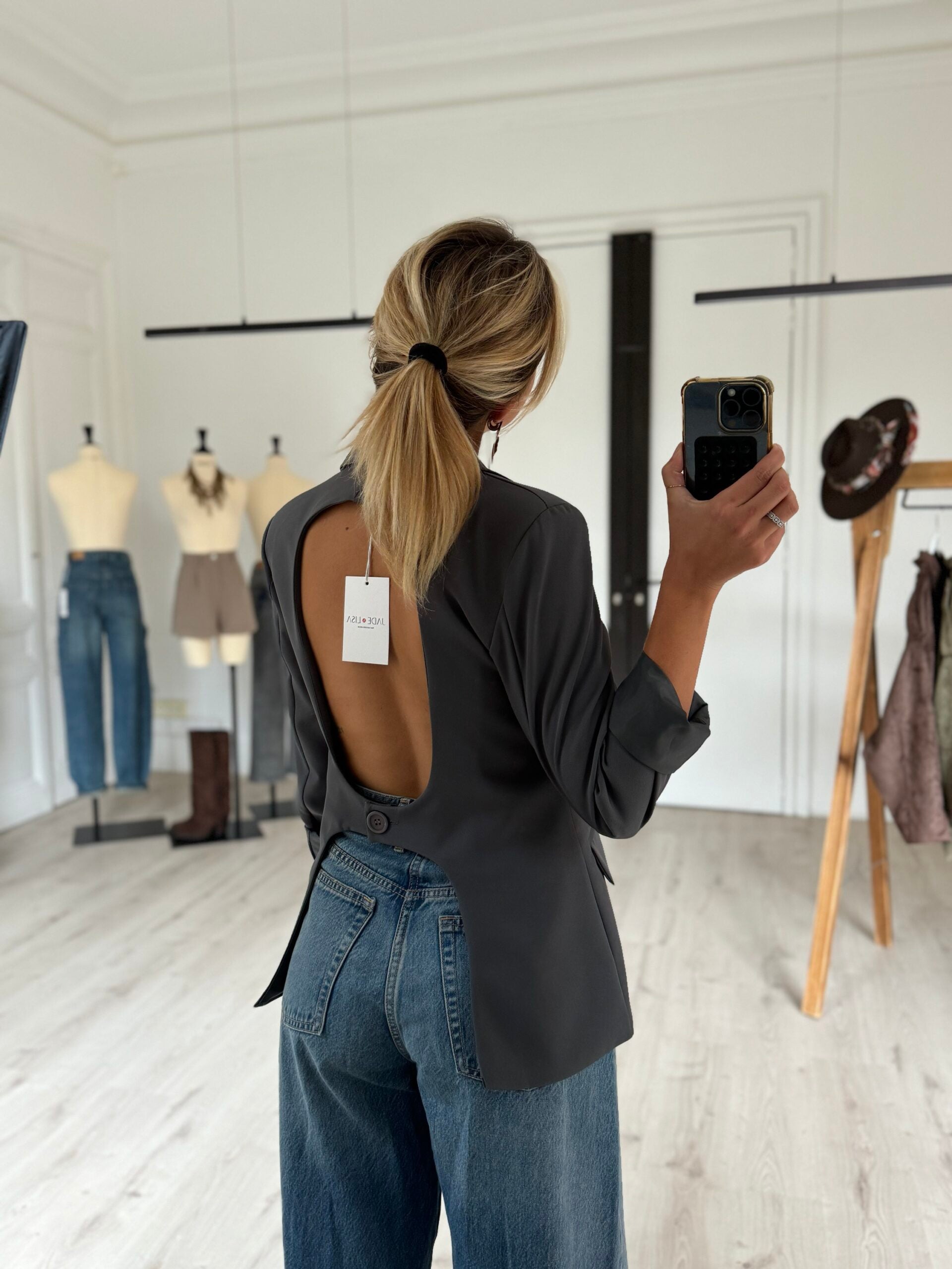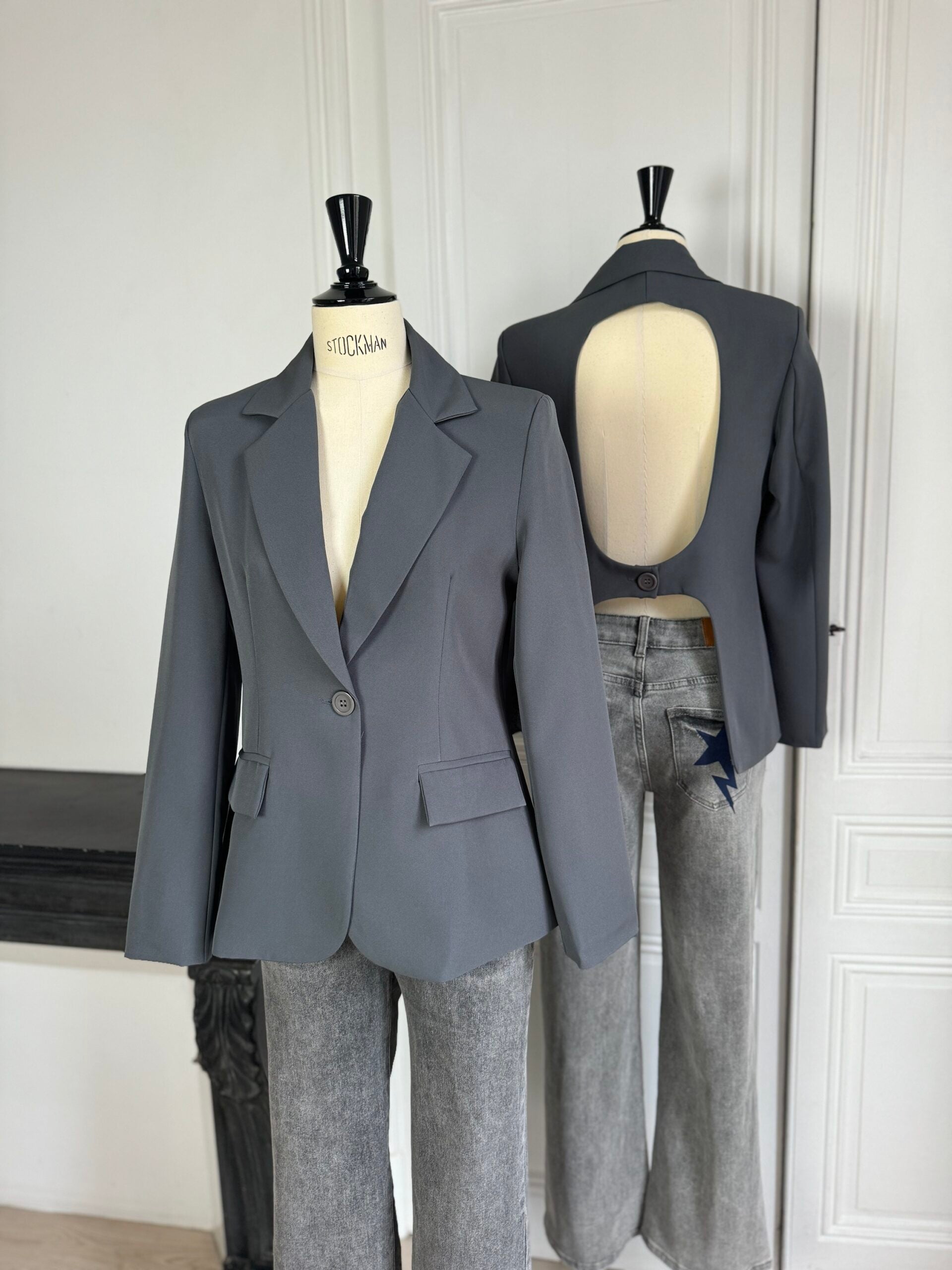 Veste de tailleur dos nu grise